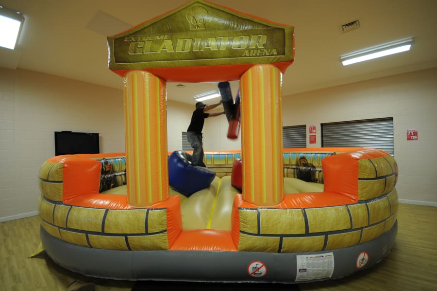 Gladiators Hire is Played by adults and children. Fantastic fun for Hire, just like you have seen on TV two contestants armed with their pugil sticks attempt to knock each other off onto the inflatable below.