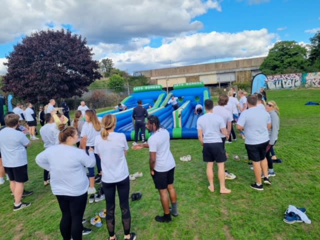 This great 4 lane version is the next step to our Bungee Run Hire that involves more people to make the competition even more harder
